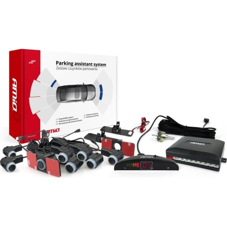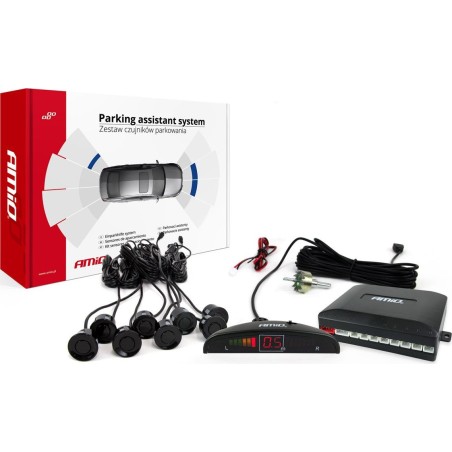 AMiO Zestaw czujników parkowania cofania led 8 sensorów czarne wewnętrzne 16,5mm 154,98 zł Dodaj do koszyka