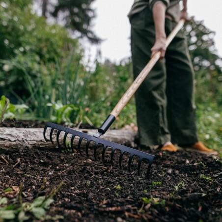 Rake FISKARS SOLID WOOD, 14 teeth, 165 cm, for soil