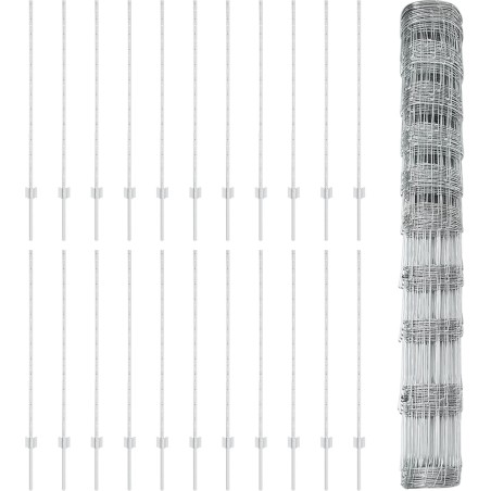 vidaXL Słupki ogrodzeniowe Zestaw 52 Stal ocynkowana 3.2 x 3.2 x 83.5 cm