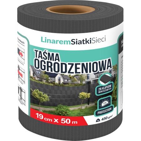 Linarem SiatkiSieci TAŚMA OGRODZENIOWA ANTRACYT 19cmx50m OSŁONA NA OGRODZENIE PANELOWE PŁOT +UV 96,60 zł Dodaj do koszyka