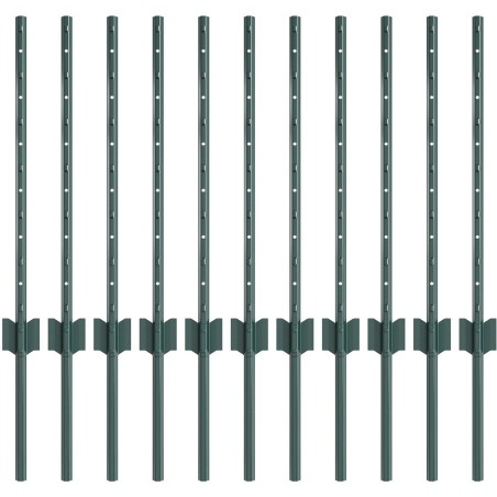 vidaXL Słupki Ogrodzeniowe 11 szt. U-Channel Zielony 60 cm Stal