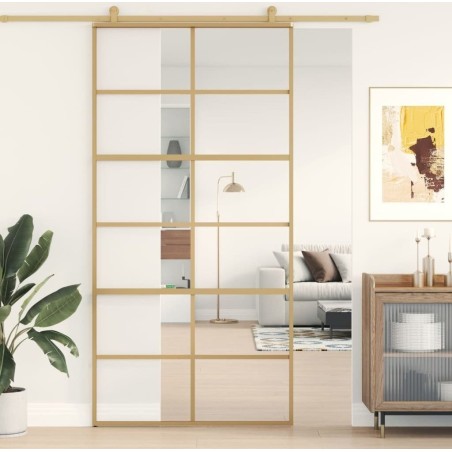 vidaXL Drzwi przesuwne, złote, 102,5x205 cm, przezroczyste szkło ESG