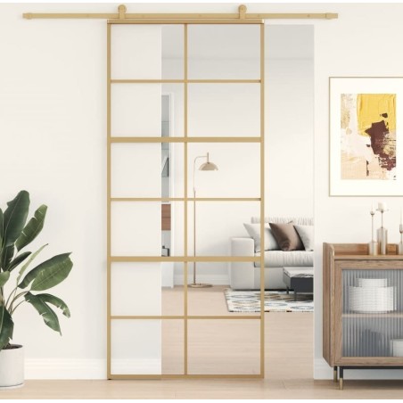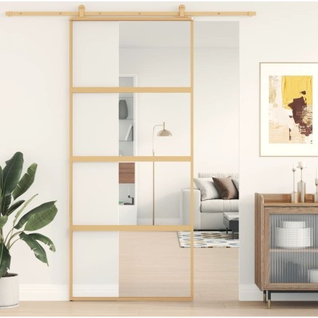 vidaXL Drzwi przesuwne, złote, 90x205 cm, przezroczyste szkło ESG
