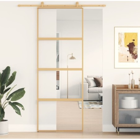 vidaXL Drzwi przesuwne, złote, 102,5x205cm, szkło hartowane, aluminium