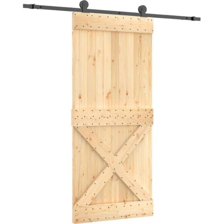 vidaXL Drzwi przesuwne z osprzętem, 90x210 cm, lite drewno sosnowe