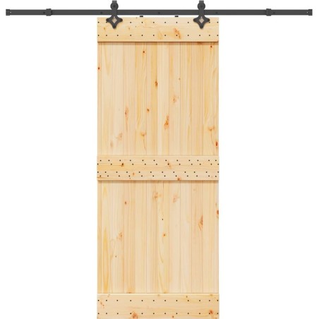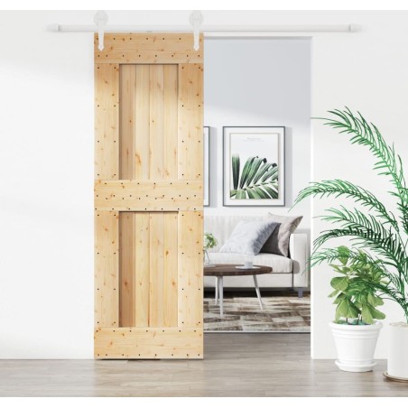 vidaXL Drzwi przesuwne z osprzętem, 85x210 cm, lite drewno sosnowe