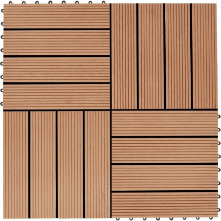 vidaXL Płytki tarasowe, 11 szt., WPC, 30 x 30 cm, 1 m, kolor tekowy