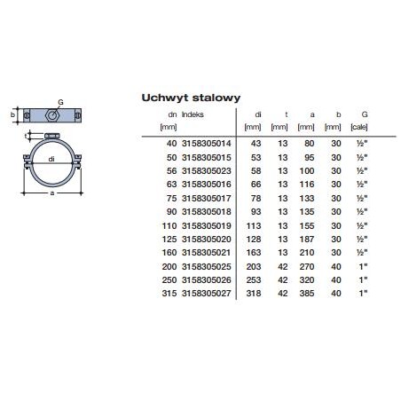 Wavin Uchwyt do rury z gwintem QUICKSTREAM 160mm 1/2" 3158305021