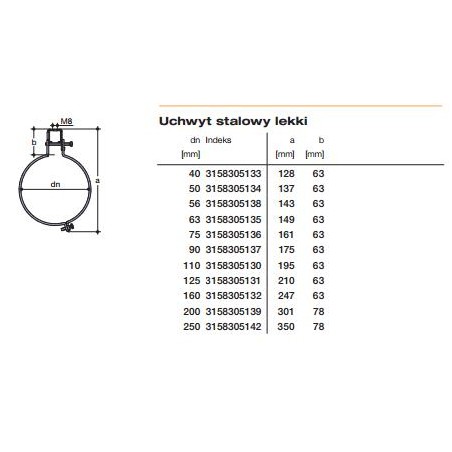 Wavin Uchwyt do rury lekki QUICKSTREAM 200mm 3158305139