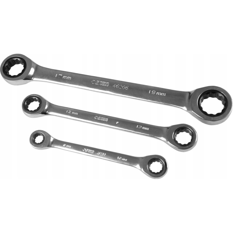 - Klucze oczkowe dwustronne z grzechotką GearWrench®: 8x10, 12x13, 17x19 mm