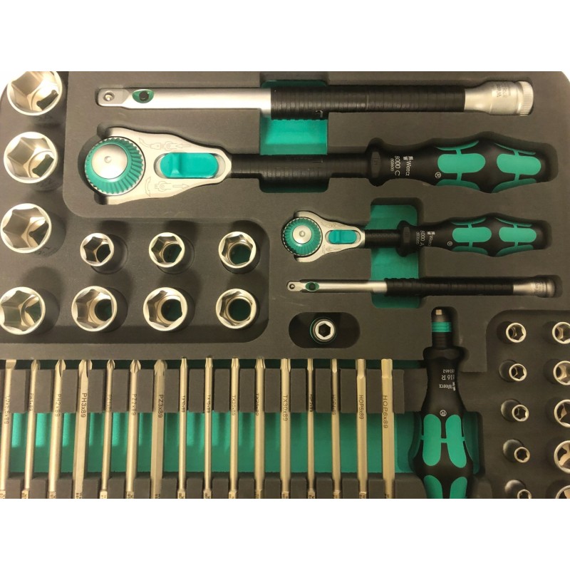 Zestawy narzędziowe Zyklop Speed są starannie wykonane w najmniejszych szczegółach: dwukolorowa wkładka z pianki umożliwia szybkie i pewne ułożenie narzędzi w kasecie - dzięki temu od razu widać, które narzędzia brakuje. Dodatkowo wkładkę z pianki można wyjąć i umieścić w szufladzie wózka narzędziowego.