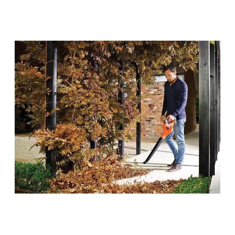 Kompaktowa i wyważona dmuchawa, idealna do utrzymania porządku w ogrodzie i do czyszczenia ścieżek, tarasów i innych powierzchni liśćmi, trawą lub gruzem. Należy pamiętać, że produkt nie zawiera baterii ani ładowarki w zestawie