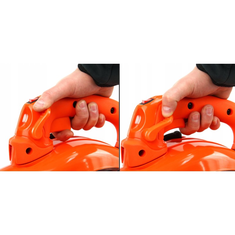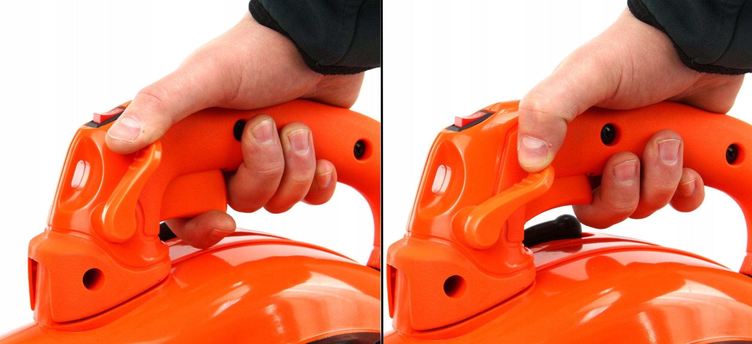 Innowacyjna dmuchawa od marki DEMON® została wyposażona w regulację siły wydmuchu , która jest dostępna za pomocą przycisku kontroli przepustnicy.