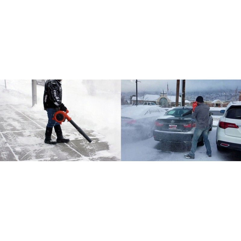 Dmuchawa spalinowa doskonale sprawdza się też w zimie przy odśnieżaniu samochodów lub podwórka.