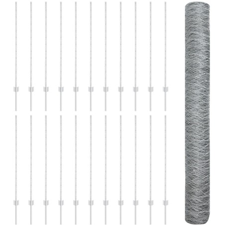 Słupki ogrodzeniowe vidaXL 22 szt. U-Channel 120 cm ze stali ocynkowanej, Ogrodzenie sześciokątne vidaXL 1.2x50 m ze stali ocynk 473,27 zł Dodaj do koszyka