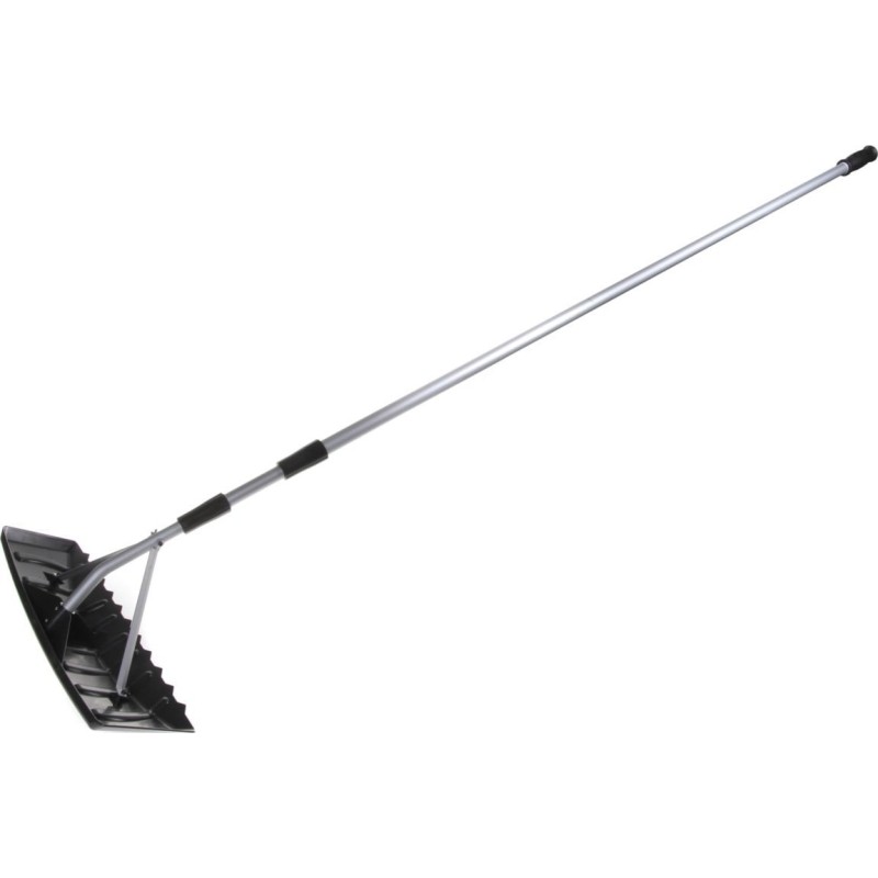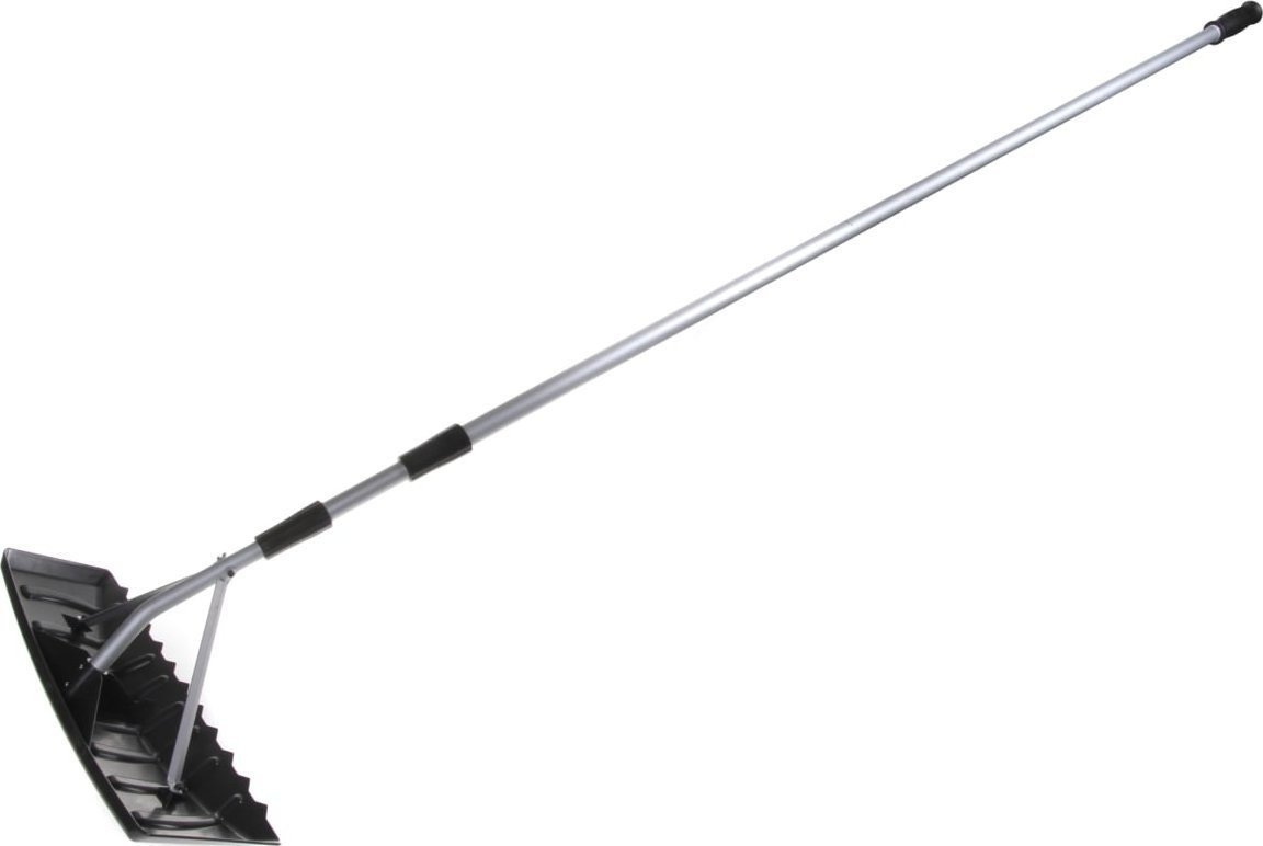 Odśnieżacz wyposażony jest w teleskopowy metalowy uchwyt, który można dostosować do maksymalnej długości 610 cm. To rozwiązanie daje użytkownikowi pełną kontrolę nad narzędziem, co ułatwia wygodne i efektywne usuwanie śniegu z trudno dostępnych miejsc.