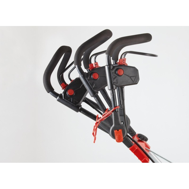Mocny silnik elektryczny 230 V / 2000 W uruchamia się łatwo i bezpiecznie. Łopatka zgarniająca składa się z mieszanki twardej gumy z osadzonym drutem stalowym. Śnieg jest wyrzucany na odległość do 10 metrów z obrotowej rynny wyrzutowej (190 stopni) dokładnie tam, gdzie chcesz. Wysokość kierownicy można łatwo dostosować do wysokości użytkownika za pomocą szybkiego zwalniania - bez użycia narzędzi i w zaledwie 2 krokach. Praktyczny uchwyt ułatwia przenoszenie. Ponadto SNOWLINE 46 E imponuje nieskomplikowanym montażem bez użycia narzędzi. A jeśli nie ma śniegu, dzięki składanemu uchwytowi można odśnieżarkę szybko złożyć, aby zajmowała mało miejsca.