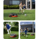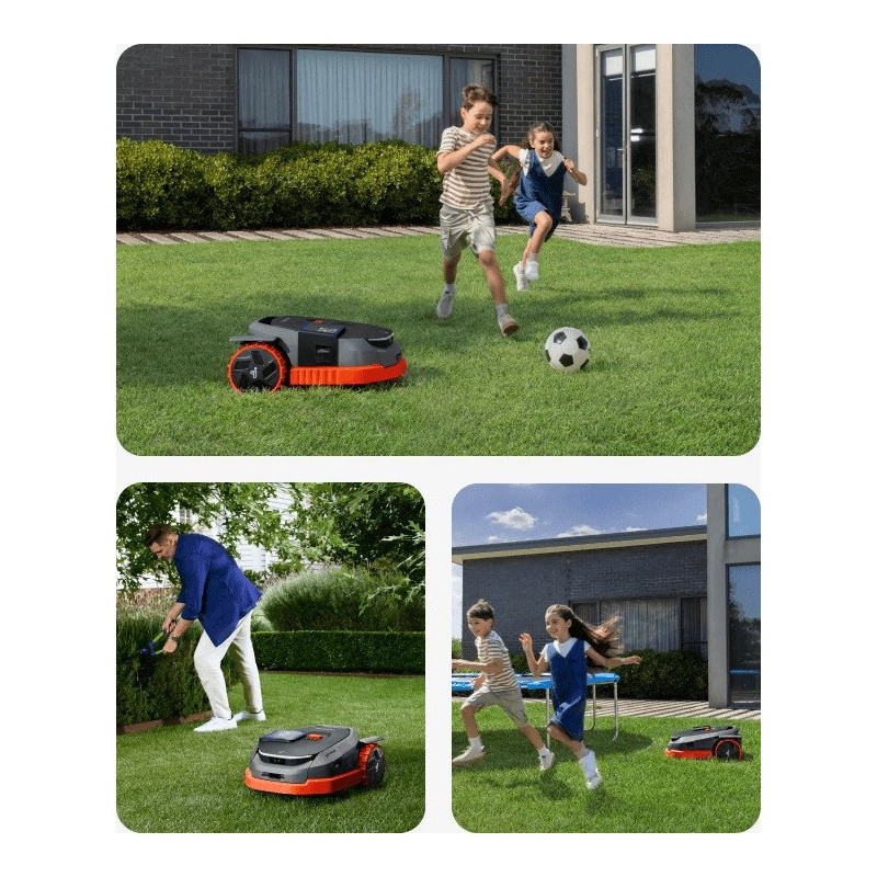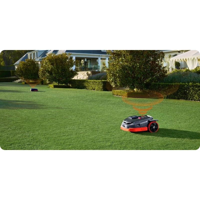 Robot koszący X350E jest zaprojektowany z myślą o bezpieczeństwie. Wyposażony w tryb ochrony zwierząt oraz AI do wykrywania ludzi, zapewnia spokój podczas pracy. Hermetyczna obudowa klasy IP66 chroni przed wodą i pyłem, a niski poziom hałasu (60 dB(A)) sprawia, że praca urządzenia jest cicha i komfortowa.