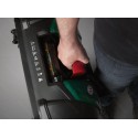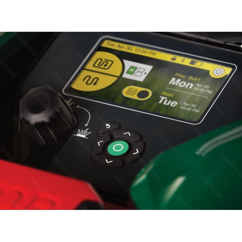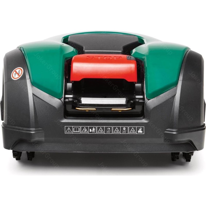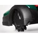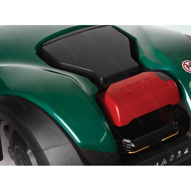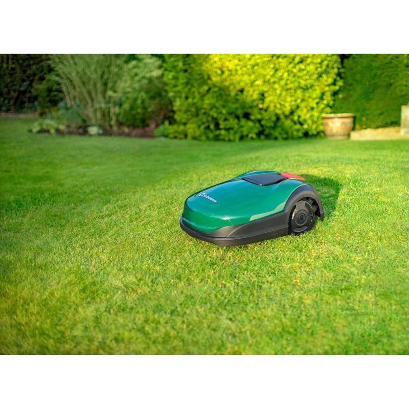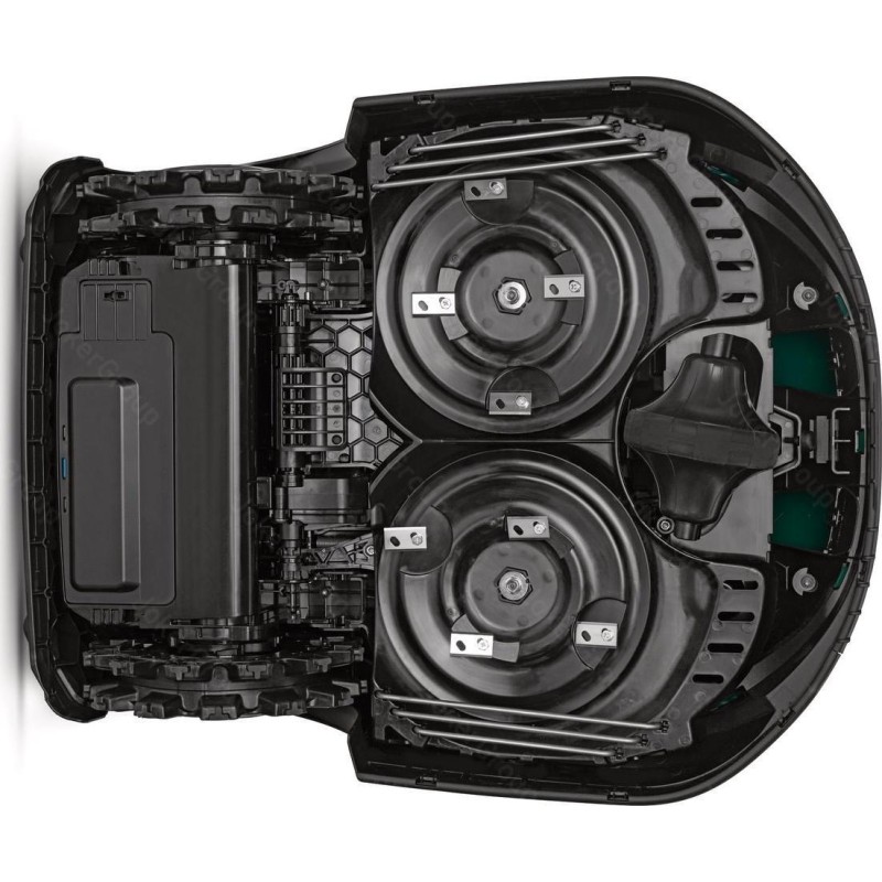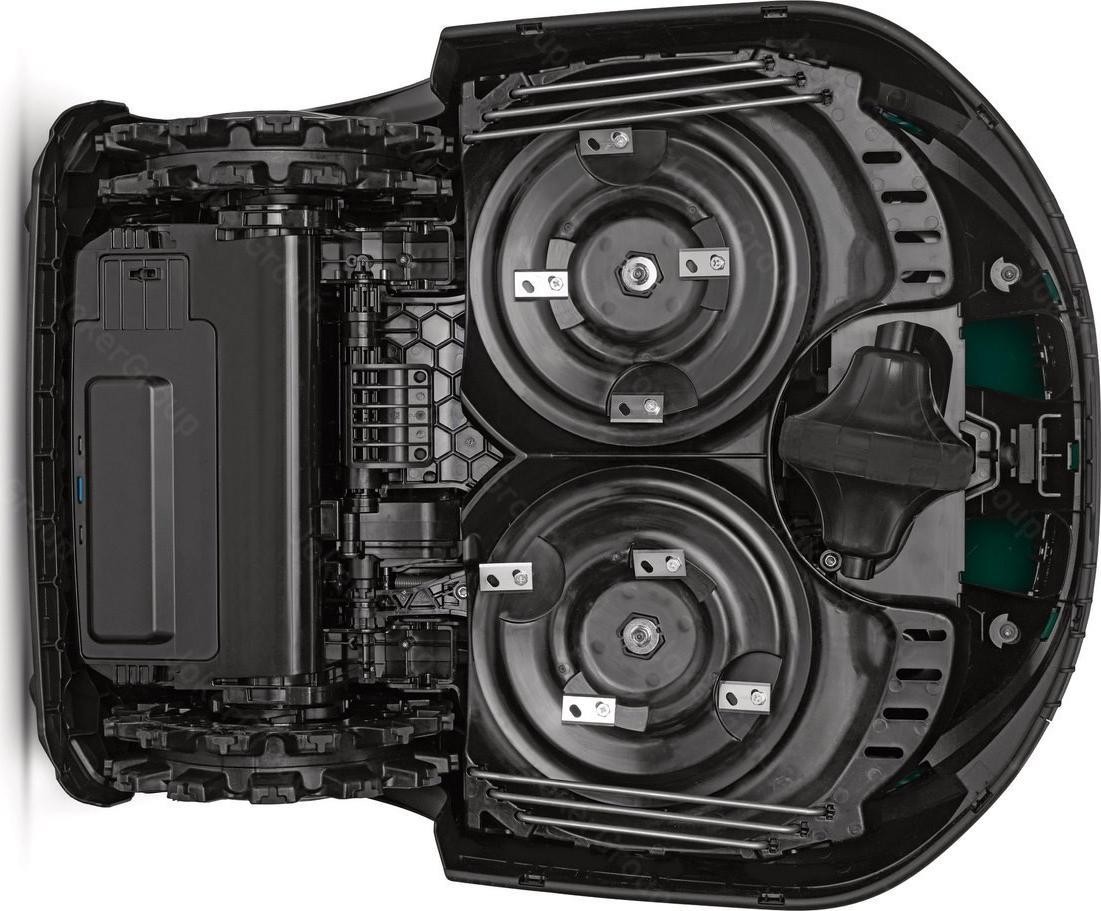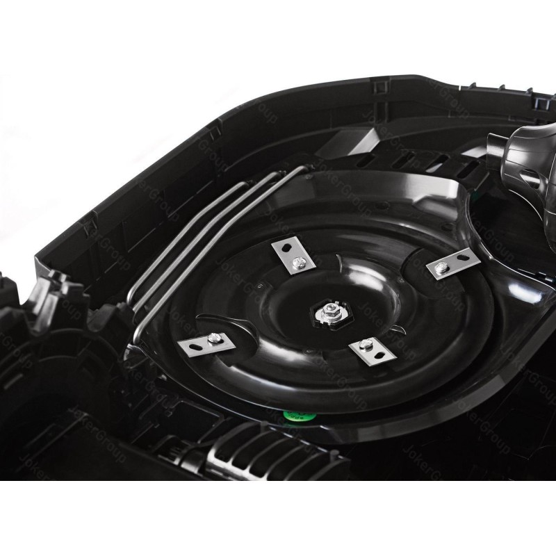 Typ silnika: elektryczny, indukcyjny. Zasilanie: 18,15V. Pojemność akumulatora: 9,6 Ah. Rodzaj akumulatora: litowo-jonowy. Ilość akumulatorów: 1. Średni czas pracy (1 ładowanie): 110 - 120 min. Średni czas ładowania: 90 - 110 min. Maksymalny obszar pracy: 4000 m2. Szerokość koszenia: 42 cm. Minimalna wysokość koszenia: 20 mm. Maksymalna wysokość koszenia: 100 mm. Tryby koszenia: losowy. Rodzaj ostrza tnącego: 2 x cztery oddzielne, podwójne nożyki. Liczba stref koszenia: 6. Maksymalne nachylenie: 45%. Stacja dokująca w zestawie: tak. Sposób powrotu do stacji dokującej: po kablu. Przewód sygnałowy w zestawie: nie. Szpilki mocujące przewód w zestawie: nie. Czujnik deszczu: nie. Czujnik przechyłu: tak. Czujnik wykrywania przeszkód: tak. Czujnik podnoszenia: tak. Moduł BLUETOOTH: tak. Aplikacja mobilna: tak. Moduł GSM: tak. Funkcja dokaszania obrzeży: tak. Zabezpieczenie kodem PIN: tak. Wyłącznik bezpieczeństwa: tak. Wyświetlacz LCD: tak. Cechy dodatkowe: pływające kosisko, zdalna obsługa serwisowa dzięki modułowi GSM.