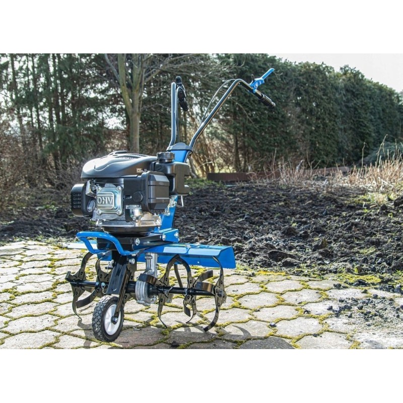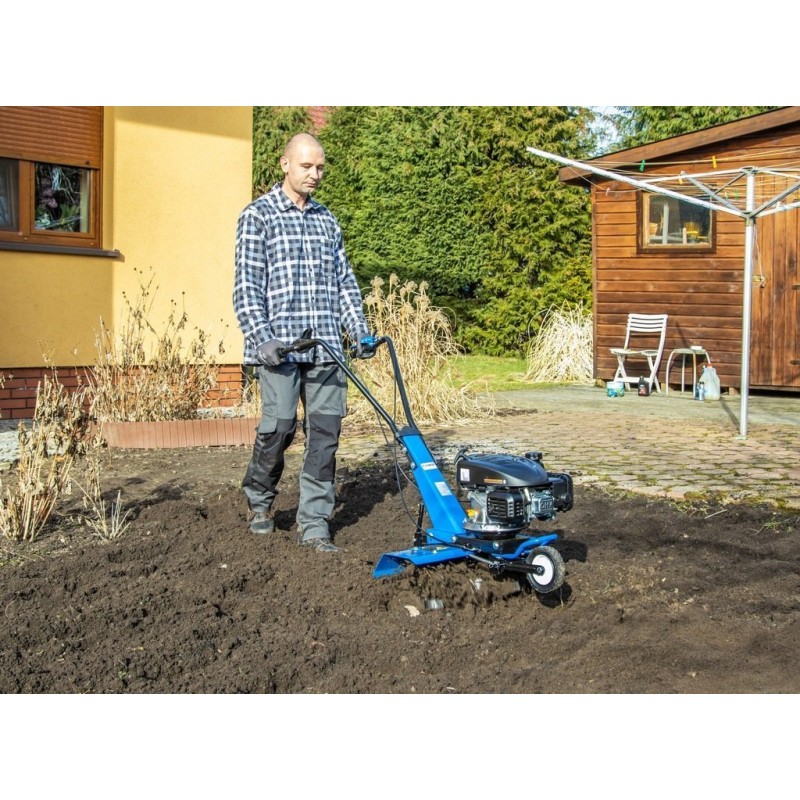 Glebogryzarka została wyposażona w wzmocniony silnik 4-suw o pojemności 139cm³ i maksymalnej mocy 5KM, dzięki któremu mamy pewność że nie zabraknie nam mocy podczas prac w ogrodzie.