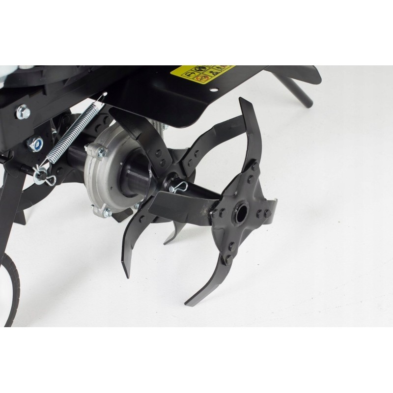 Szpecjalnie ukształtowane noże do spulchniania, w połączeniu z mocnym silnikiem, gwarantują efektywne przygotowanie gleby - część robocza posiada 4 gwiazdy robocze, hartowane noże tnące zamontowane na wirującym wałku, które samoczynnie wgryzają się w ziemię.