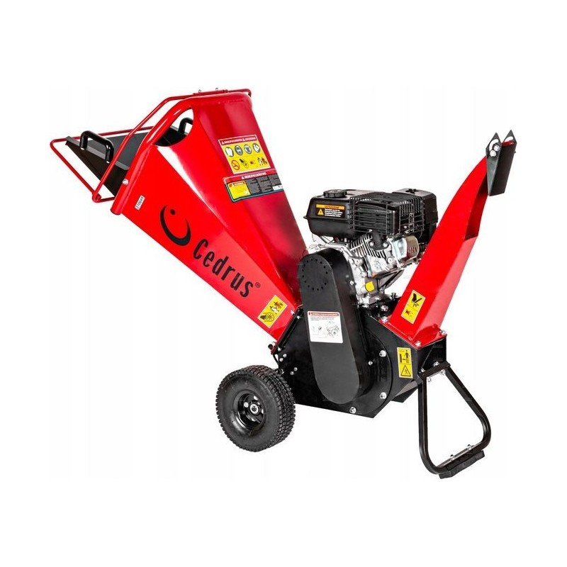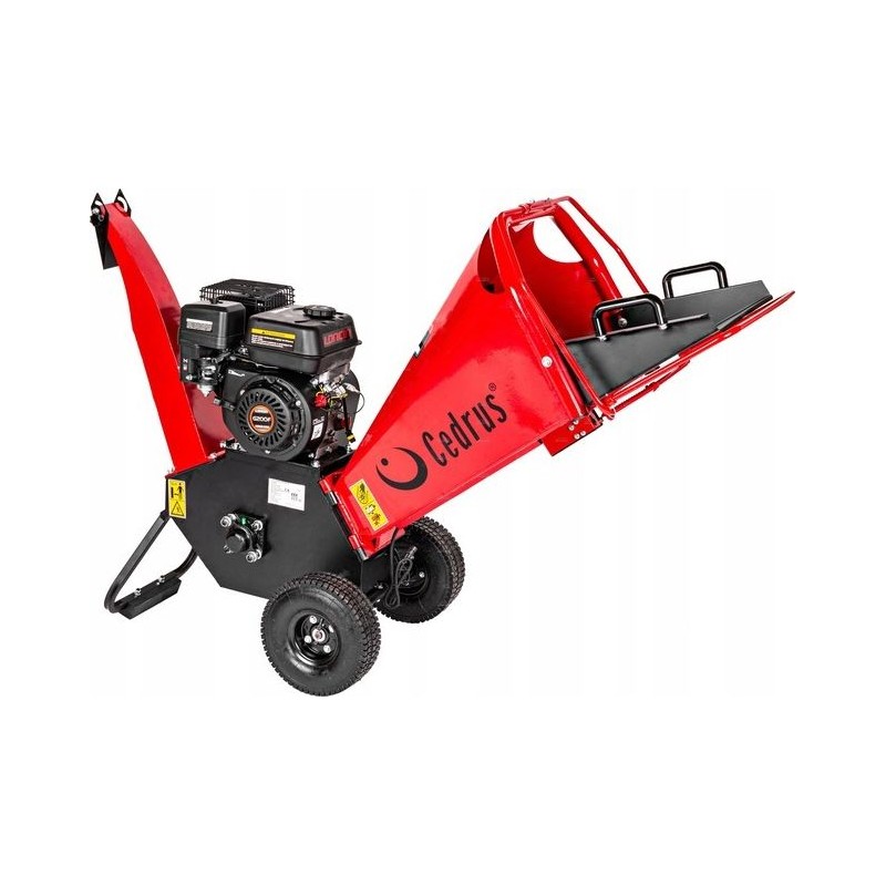 Rozdrabniacz spalinowy Cedrus RB02 to wydajna maszyna przeznaczona do pracy z gałęziami o średnicy aż do 10cm. Rozdrabniacz spalinowy Cedrus RB02 to urządzenie idealne dla właścicieli prywatnych ogrodów oraz sadów. Bez problemów poradzi sobie z rozdrabnianiem gałęzi do 10cm. Wydajność tej maszyny wacha się w przedziale 3 m3/h – 5 m3/h. Dużo lepszy efekt pracy uzyskamy rozdrabniając mokry materiał. Rozdrabniacz RB02 wyposażony został w wydajny silnik o mocy 4,8kW/3600obr/min z żeliwną tuleją oraz tranzystorowym zapłonem. Silnik napędza urządzenie robocze, w postaci bębna z dwoma nożami roboczymi o średnicy 150mm, za pomocą dwóch pasków klinowych. Urządzenie wyposażone zostało w dwa wyłączniki bezpieczeństwa, regulowany komin wyrzutowy, pompowane koła, wygodny uchwyt do transportu oraz szeroki otwór wlotowy pozwalający pracować nawet z mocno rozgałęźnymi konarami. Ścięty materiał nadaje się do kompostowania, obsypywania rabatek z drzewami lub krzewami lub po wysuszeniu można stosować go jako opał.