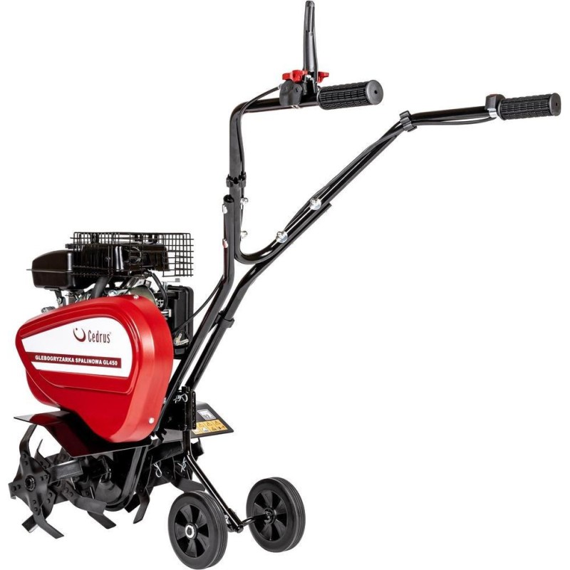 Glebogryzarka Cedrus GL08 / GL450 z silnikiem WEIMA o mocy 2.3 KM to jedna z najmniejszych glebogryzarek o napędzie spalinowym stworzona do pracy w przydomowym ogródku do powierzchni 600m2 . Dzięki niewielkiej szerokości roboczej można ją wykorzystywać w wąskich międzyrzędach i pracy w kłopotliwych miejscach. Regulowany uchwyt i intuicyjne sterowanie sprawiają, że praca tą glebogryzarką jest łatwa i komfortowa. Mocny silnik oraz noże robocze wykonane z wysokiej jakości stali gwarantują długie i bezproblemowe użytkowanie glebogryzarki Cedrus. Dzięki kołom transportowym, będącym w komplecie, przemieszczanie naszej glebogryzarki jest łatwe i nie wymaga wysiłku.