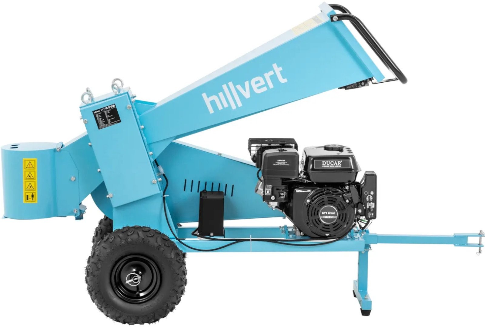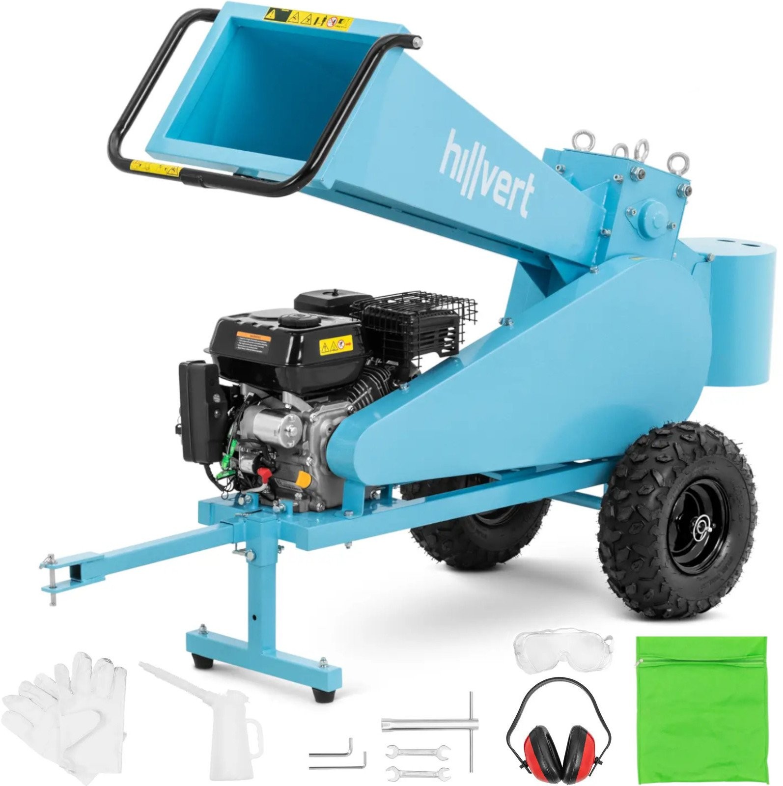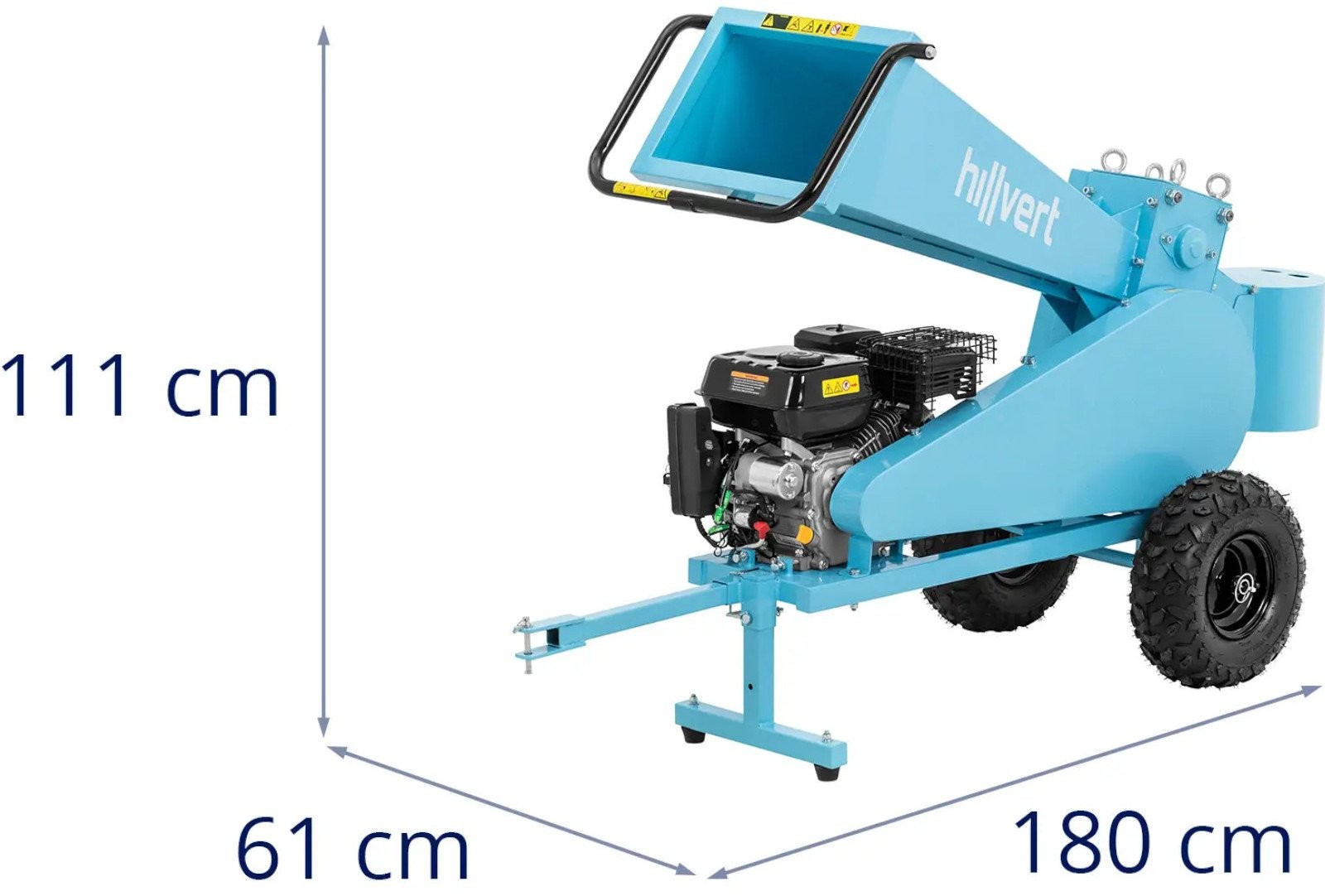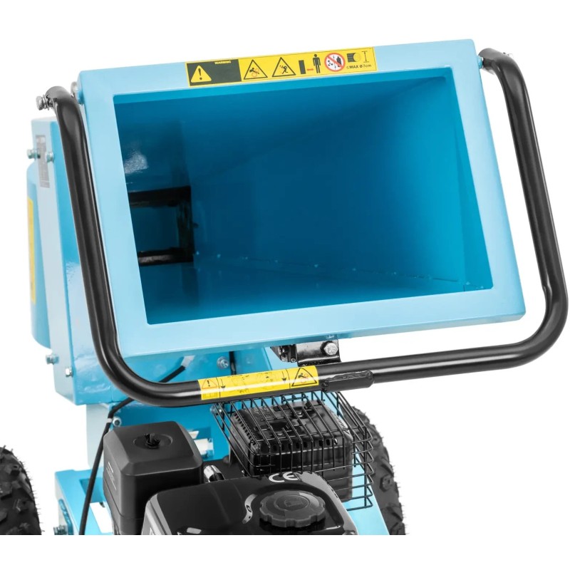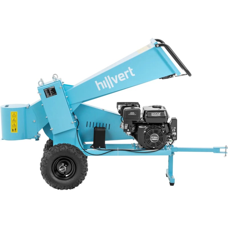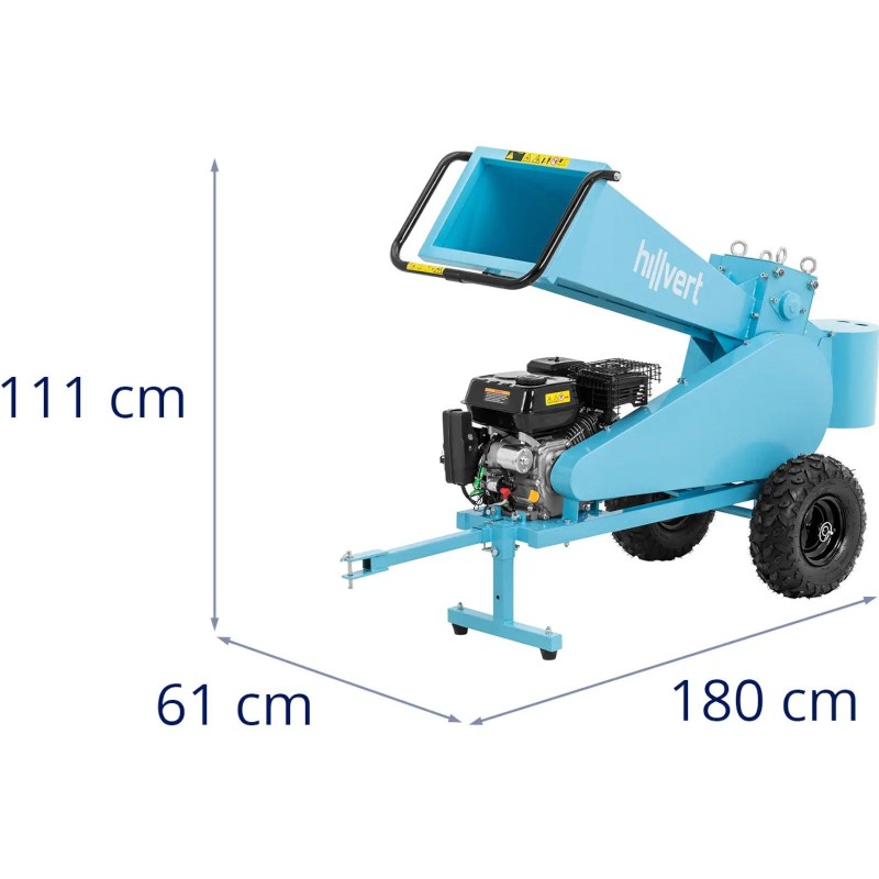 Rozdrabniacz spalinowy marki Hillvert pozwala na przetworzenie obciętych gałęzi w ogrodzie czy na działce. Tnie je na kawałki o długości do 22 cm. Urządzenie wyposażono w precyzyjny zespół tnący z czterema wałami i mocnym 4-suwowym silnikiem OVH o pojemności 212 m³. Zbiornik paliwa o pojemności 3,6 l gwarantuje długi czas pracy. Silnik rębaka ma moc 7 KM, co pozwoli bezpiecznie dzielić gałęzie o średnicy 7 cm. Gałęzie wsuwa się do urządzenia przez poziomy lej załadowczy, który doprowadza drewno do zespołu tnącego. Otrzymane kawałki o długości do 20 cm, wygodnie można przechować lub wykorzystać jako opał. Rębak łatwo można przetransportować bezpośrednio do miejsca użycia za pomocą haka holowniczego i dwóch dużych gumowych kół. Solidna podstawa utrzymuje maszynę dla bezpiecznej i stabilnej pracy.