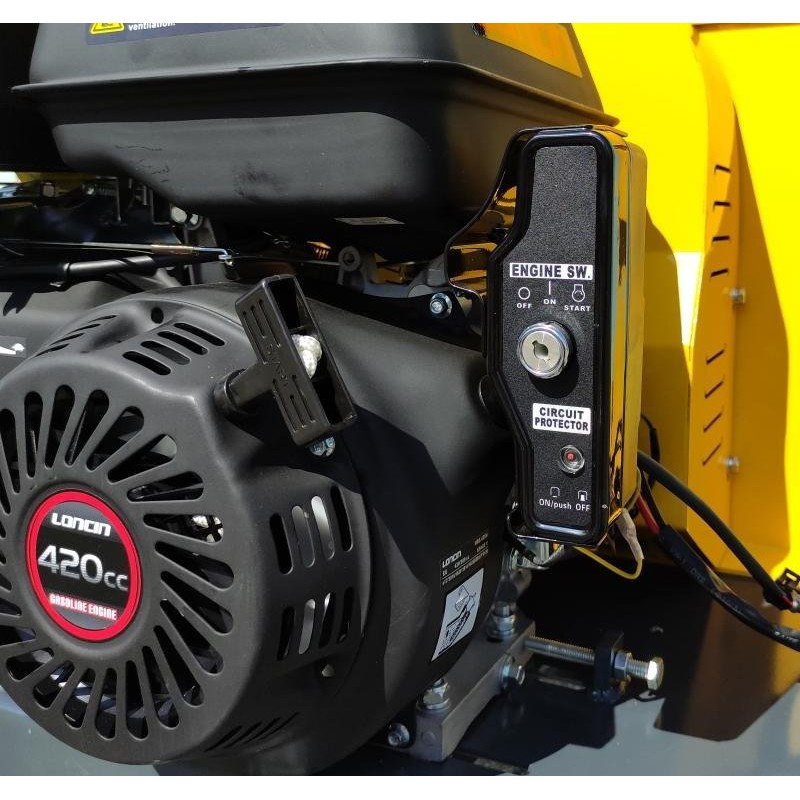 Rozdrabniacz MASTERCUT AU-DGS1500 napędzany jest silnikiem benzynowym o mocy 12 KM. Maszyna przeznaczona jest do rozdrabniania i rozdrabniania gałęzi drzew oraz innych materiałów organicznych. Ma zdolność przetwarzania materiałów o średnicy do 12 cm.