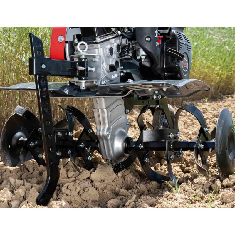 Typ silnika: spalinowy, czterosuwowy, górnozaworowy. Producent silnika: AL-KO. Pojemność silnika: 196 cm3. Znamionowa moc silnika: 4,8 kW. Maksymalna szerokość robocza: 77 cm. Ilość gwiazd roboczych: 6 (3+3). Ilość noży pielących: 24. Bieg do przodu: tak, 2 biegi. Bieg wsteczny: tak. Tarcze boczne chroniące rośliny: tak. Ilość kół podporowych: 1 z przodu.