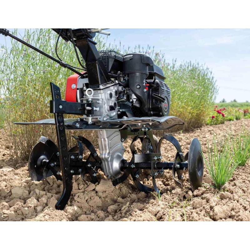 Typ silnika: spalinowy, czterosuwowy, górnozaworowy. Producent silnika: AL-KO. Pojemność silnika: 196 cm3. Znamionowa moc silnika: 4,8 kW. Maksymalna szerokość robocza: 77 cm. Ilość gwiazd roboczych: 6 (3+3). Ilość noży pielących: 24. Bieg do przodu: tak, 2 biegi. Bieg wsteczny: tak. Tarcze boczne chroniące rośliny: tak. Ilość kół podporowych: 1 z przodu.