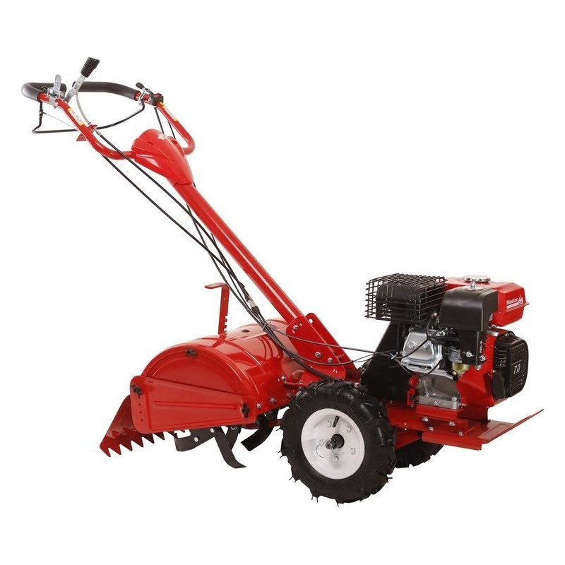 Kultywator spalinowy Mastercut HSDT1050 z zespolonym napędem noży i kół. W trakcie pracy koła napędowe obracają się w przeciwnym kierunku co noże. Zastosowanie takiego systemu zwiększa dokładność wykonanej pracy ograniczając nieskoordynowane ruchy glebogr