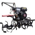 Spalinowe urządzenie do pielęgnacji ogrodu, działki, pola uprawnego. Urządzenie to przeznaczone do prac polowych. Za pomocą tej maszyny można spulchnić glebę. Z wykorzystaniem osprzętu dodatkowego przygotować pod uprawę.