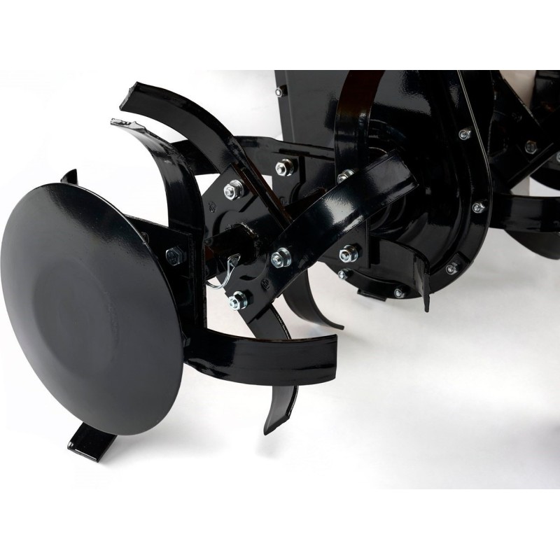 Szczególnie zaprojektowane noże do rozluźniania, w połączeniu z silnym silnikiem, zapewniają wydajne przygotowanie gleby - część robocza ma 6 gwiazd roboczych, hartowanych ostrzy zainstalowanych na obracającym się wału, które same w sobie wiercą się w ziemię.