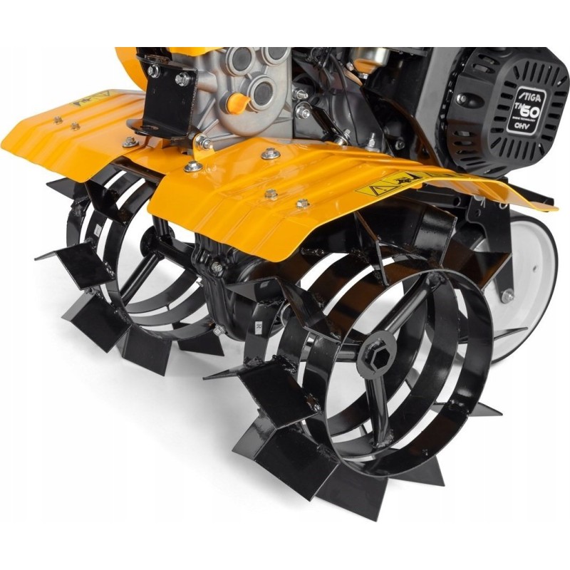 Dzięki innowacyjnej technologii, wydajny i niezawodny silnik STIGA TM 60 o dużej mocy znamionowej 3,5 kW i pojemności aż 182 cm3 można szybko i łatwo uruchomić - ogromna moc w kompaktowym rozmiarze. 4-suwowy silnik o pojemności 182 cm³ i dwie prędkości (1 do przodu i 1 do tyłu) zapewniają łatwe manewrowanie urządzeniem.
