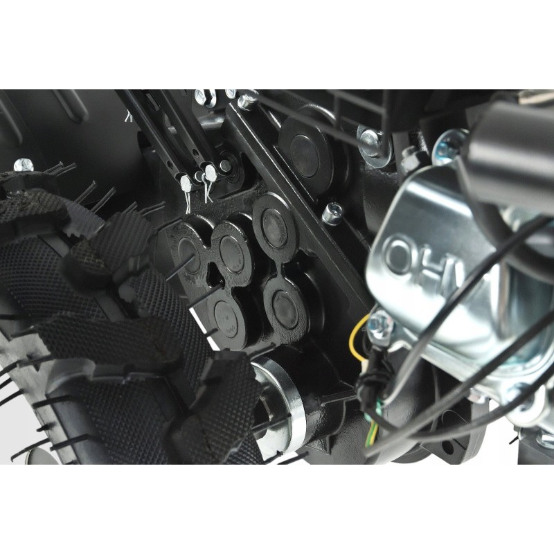 Wyposażona w spalinowy napęd, glebogryzarka HGS ST360 R212 zapewnia doskonałą mobilność i wydajność. Gumowe koła o średnicy 40 cm ułatwiają manewrowanie, co jest szczególnie istotne podczas pracy na nierównym terenie.