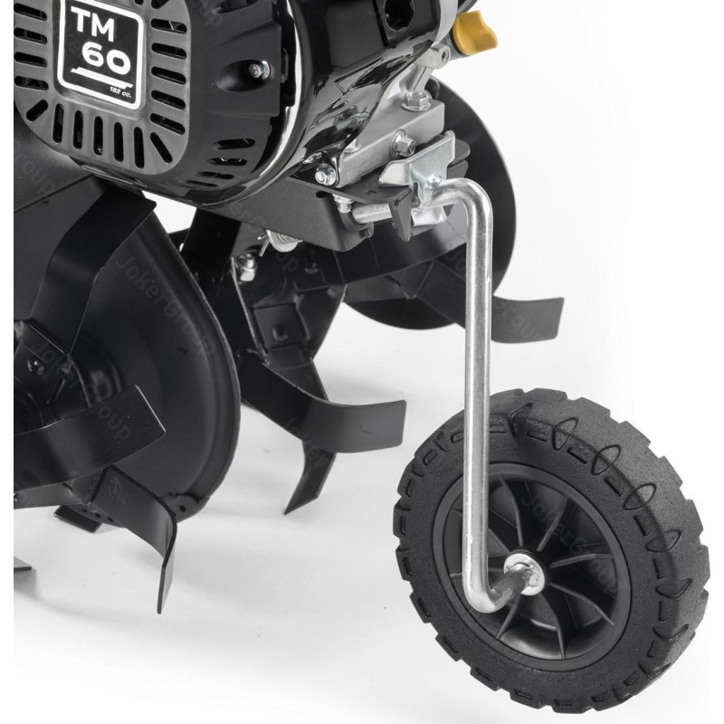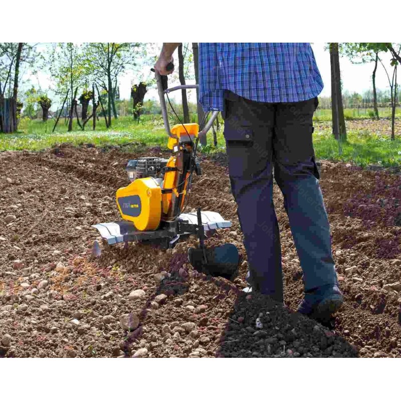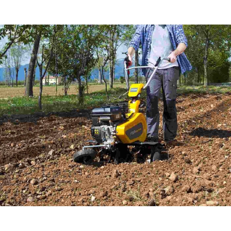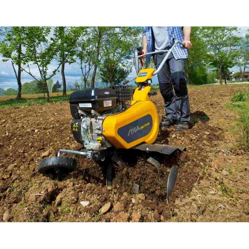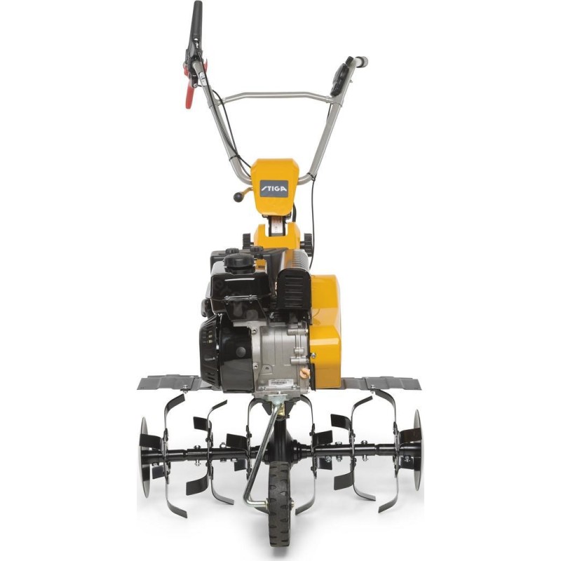 Typ silnika: spalinowy, czterosuwowy, górnozaworowy. Producent silnika: STIGA. Model silnika: TM 60. Pojemność silnika: 182 cm3. Znamionowa moc silnika: 3,1 kW. Maksymalna szerokość robocza: 75 cm. Maksymalna głębokość robocza: 26 cm. Ilość gwiazd roboczych: 6 (3+3). Ilość noży pielących: 24. Bieg do przodu: tak. Bieg wsteczny: tak. Tarcze boczne chroniące rośliny: tak. Ilość kół podporowych: 1 z przodu.