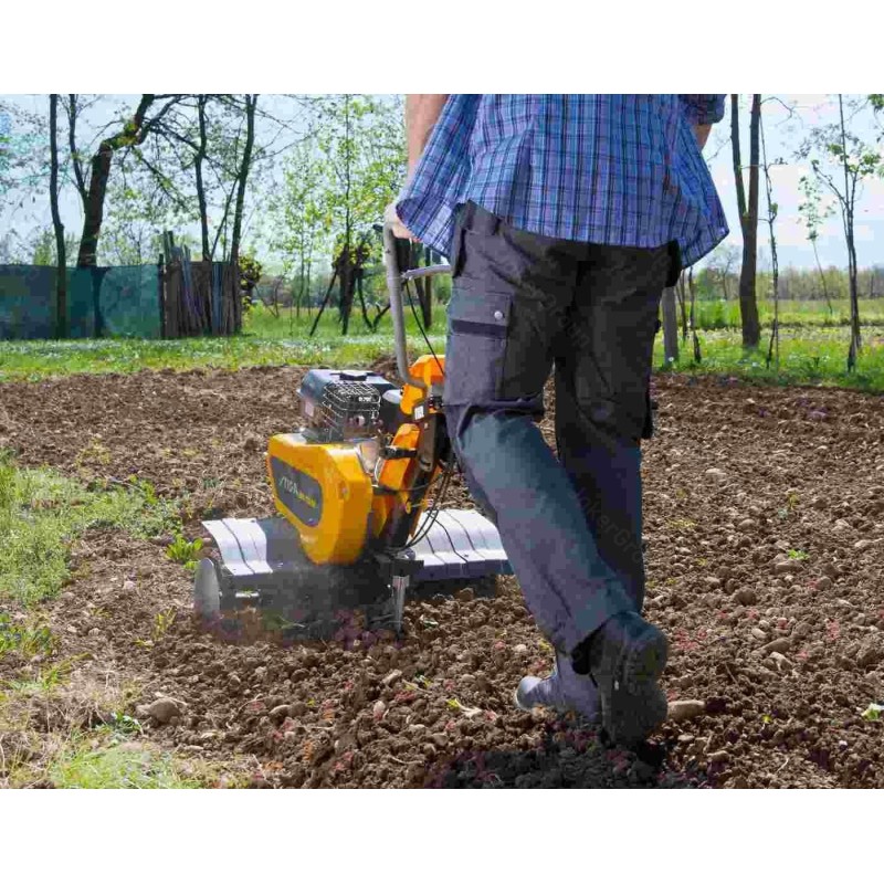 Typ silnika: spalinowy, czterosuwowy, górnozaworowy. Producent silnika: Briggs & Stratton. Model silnika: CR950. Pojemność silnika: 208 cm3. Znamionowa moc silnika: 3,96 kW. Maksymalna szerokość robocza: 75 cm. Maksymalna głębokość robocza: 26 cm. Ilość gwiazd roboczych: 6 (3+3). Ilość noży pielących: 24. Bieg do przodu: tak. Bieg wsteczny: tak. Tarcze boczne chroniące rośliny: tak. Ilość kół podporowych: 1 z przodu.