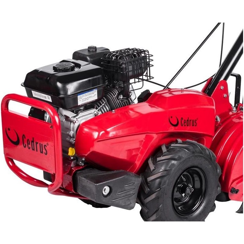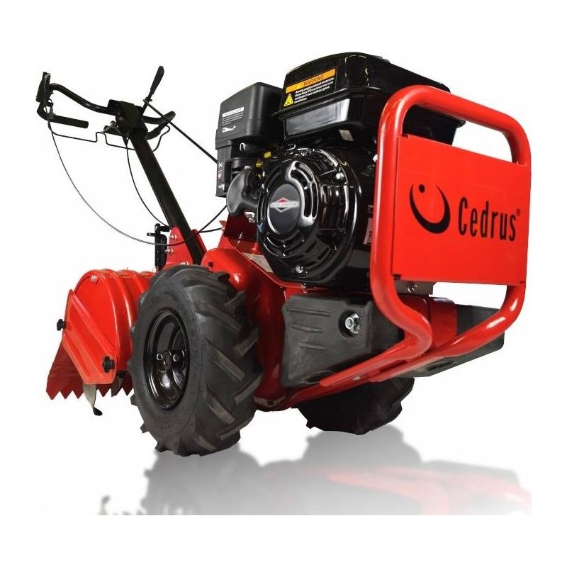 Glebogryzarka CEDRUS GL03PRO-LC to wszechstronna i uniwersalna glebogryzarka z niezależnym napędem na koła. Przeznaczona do pracy w ogrodach, tunelach foliowych, szklarniach oraz gospodarstwach rolniczych uprawiających rośliny rzędowo. Napęd na koła doskonale amortyzuje siły przenoszone z noży roboczych, zmniejsza wysiłek podczas pracy i umożliwia dokładne spulchnienie gleby już za pierwszym przejazdem roboczym. Koła ułatwiają również przetaczanie maszyny do miejsca pracy która wykonywana tą glebogryzarką jest lekka i efektywna. Wyposażenie modelu GL03PRO-LC w mocny i niezawodny silnik Loncin, bieg wsteczny czy regulację głębokości pracy, czyni z glebogryzarki bardzo wydajne urządzenie. Przygotowanie lub uprawa gleby stają się przy jej pomocy łatwe, szybkie i przyjemne. CEDRUS GL03PRO-LC - to Profesjonalna glebogryzarka - z funkcją zmiany kierunku obrotu pracy noży podczas pracy