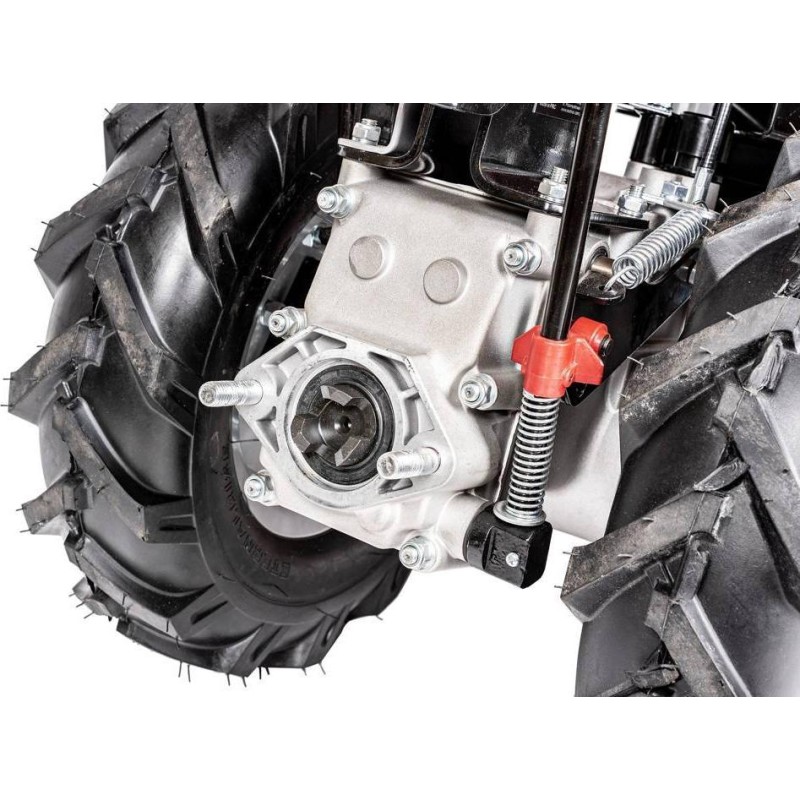 - NAPĘD NA KOŁA - Sprawia, że maszyna nie szarpie, doskonale amortyzując siły przenoszone z noży roboczych, zmniejsza wysiłek podczas pracy i umożliwia dokładne spulchnienie gleby już za pierwszym przejazdem roboczym.