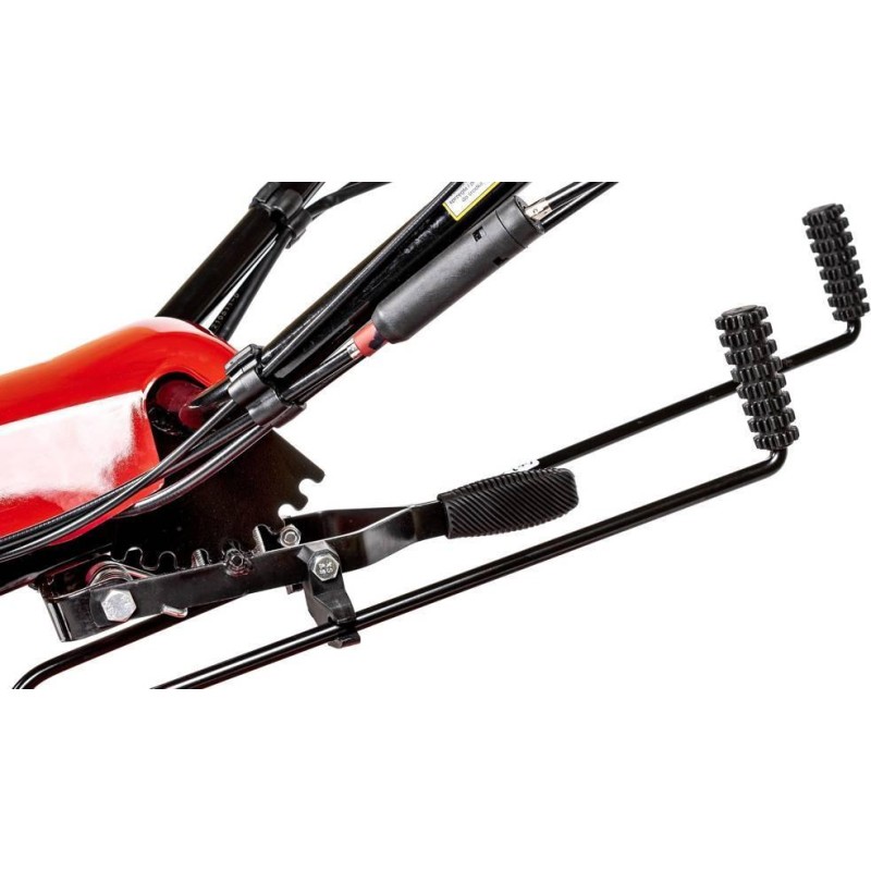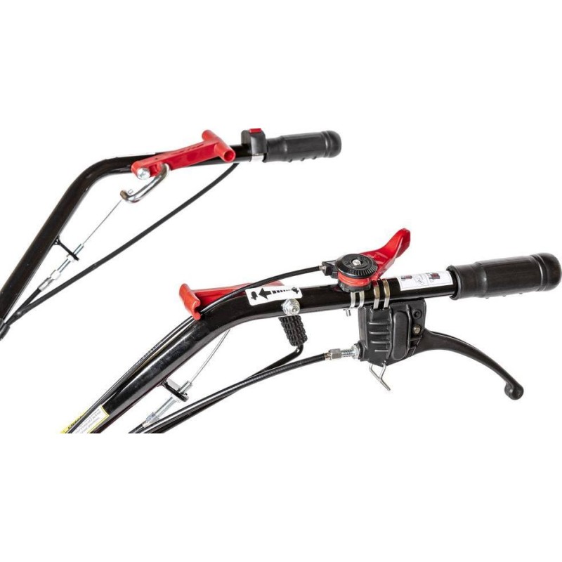 Glebogryzarka posiada koła transportowe, ułatwiające przemieszczanie się oraz regulowaną wysokość dźwigni sterującej, dzięki której można dostosować wysokość do wzrostu użytkownika.