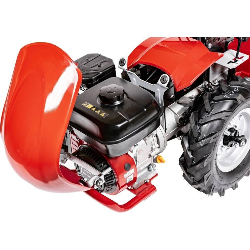 - Napęd na koła sprawia, że maszyna nie szarpie, doskonale amortyzując siły przenoszone z noży roboczych, zmniejsza wysiłek podczas pracy i umożliwia dokładne spulchnienie gleby już za pierwszym przejazdem roboczym.