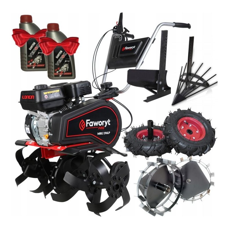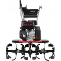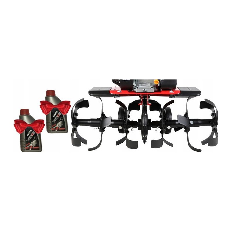 Typ silnika: spalinowy, czterosuwowy, górnozaworowy. Producent silnika: LONCIN. Model silnika: G200F. Pojemność silnika: 196 cm3. Maksymalna moc silnika: 6,5 KM. Maksymalna szerokość robocza: 85 cm. Maksymalna głębokość robocza: 33 cm. Ilość gwiazd roboczych: 6 (3+3). Ilość noży pielących: 24. Bieg do przodu: tak. Bieg wsteczny: tak. Tarcze boczne chroniące rośliny: nie. Ilość kół podporowych: 2 z tyłu.