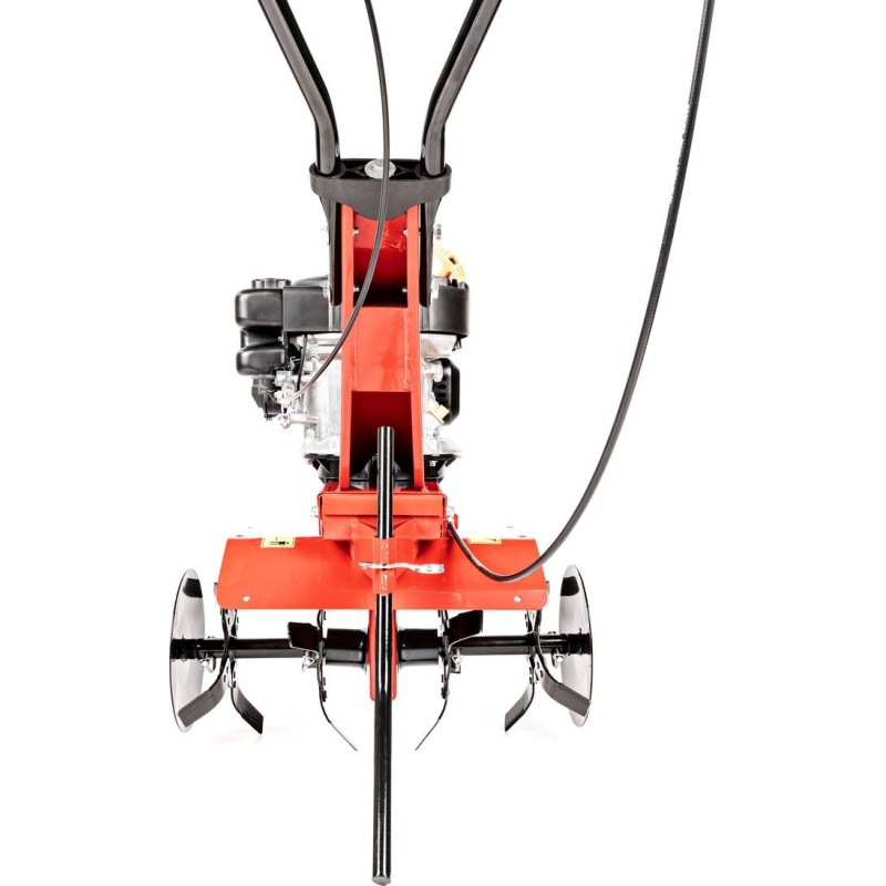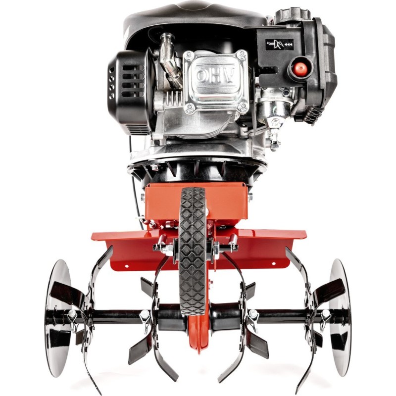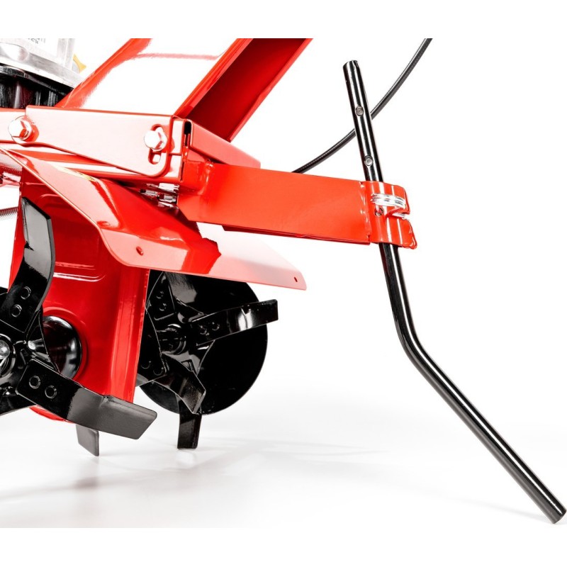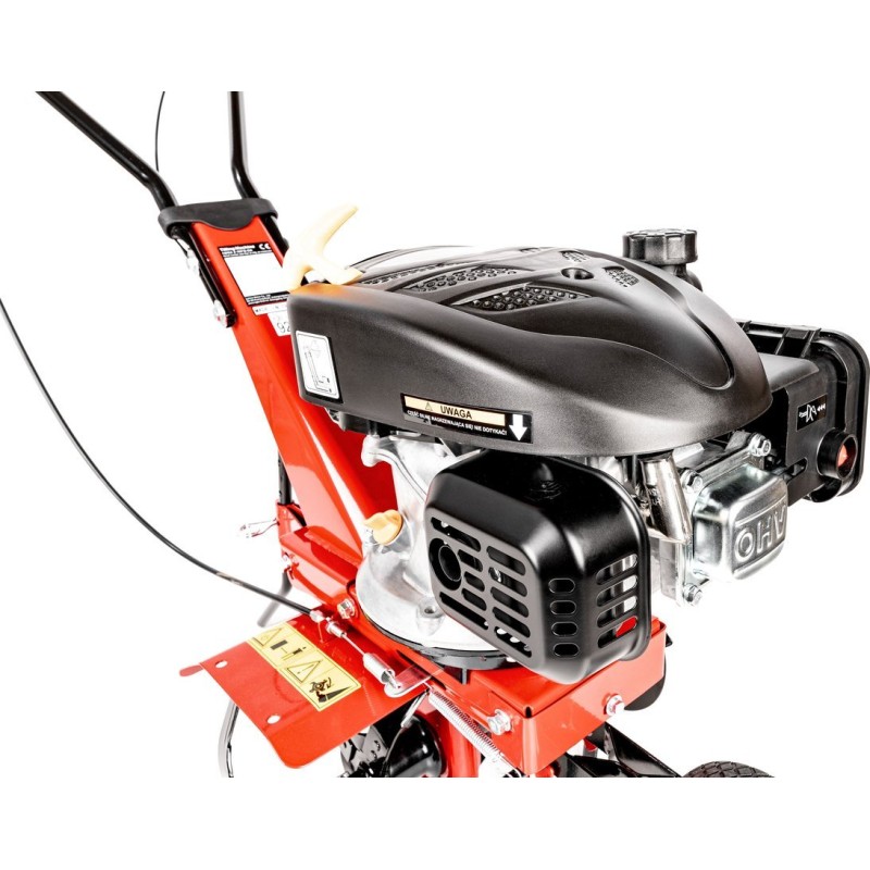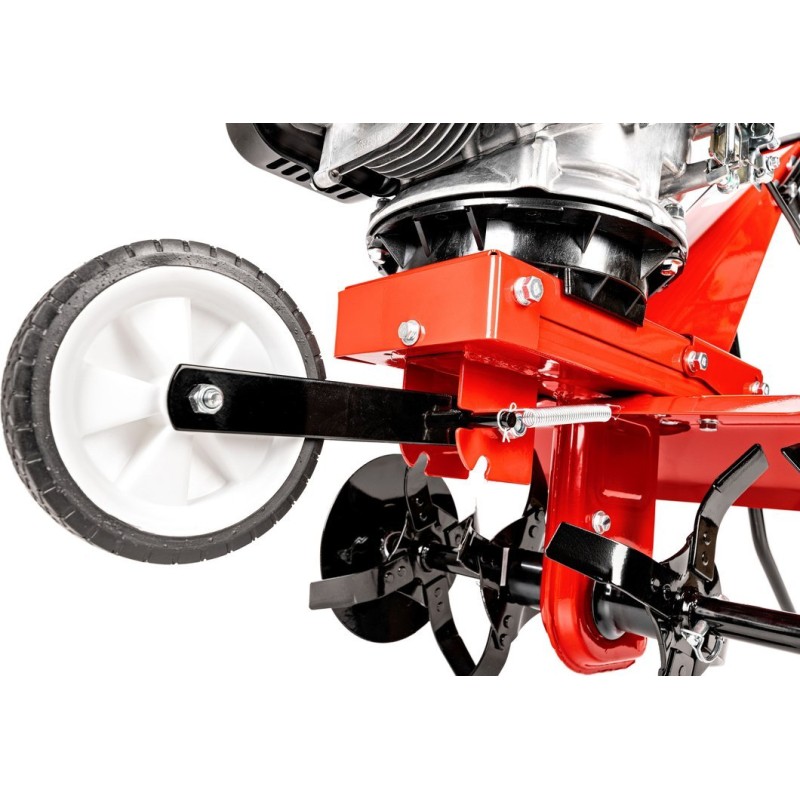 Glebogryzarka została wyposażona w silnik Loncin o mocy 3,5 KM (2,4 kW) oraz pojemności 139 cm³. Taki silnik zapewnia nie tylko moc, ale także efektywność, co przekłada się na długotrwałe i wydajne użytkowanie. Noże robocze, wykonane z wysokiej jakości stali, gwarantują znakomite rezultaty pracy, nawet w trudnych warunkach glebowych.