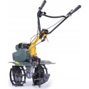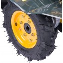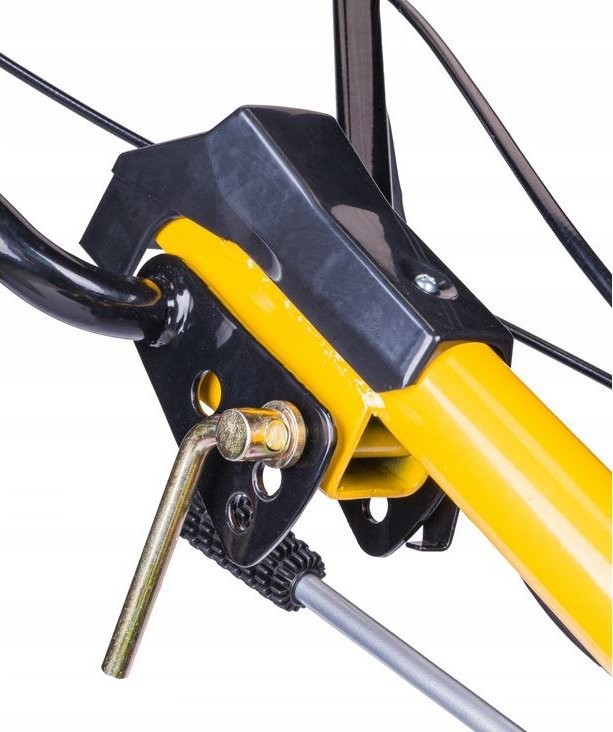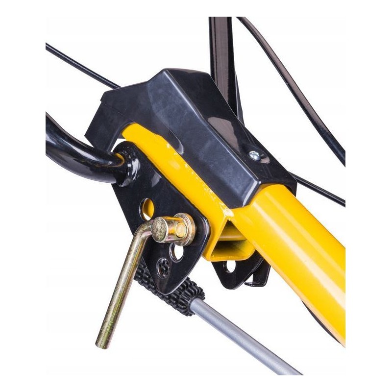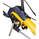 - Glebogryzarka posiada koło transportowe, ułatwiające przemieszczanie się oraz regulowaną wysokość dźwigni sterującej, dzięki której można dostosować wysokość do wzrostu użytkownika