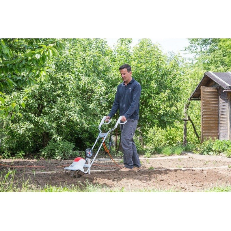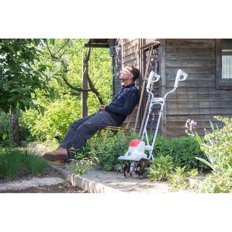 Przygotowanie gleby na przyszły sezon jest czasochłonnym i wymagającym zadaniem. Dzięki glebogryzarce IKRA IEM 800S ciężka praca może stać się przyjemnością. Komplet czterech noży obrotowych rozdrabnia na kawałki i miesza ziemię. W ten sposób można również zmieszać ziemię z obornikiem, kompostem lub nawozem do gleby. Ciężką pracę, która jest wykonywana przy użyciu klasycznych narzędzi trwającą długie godziny, zamienisz na przyjemną, którą z łatwością wykonasz w ciągu kilku minut.