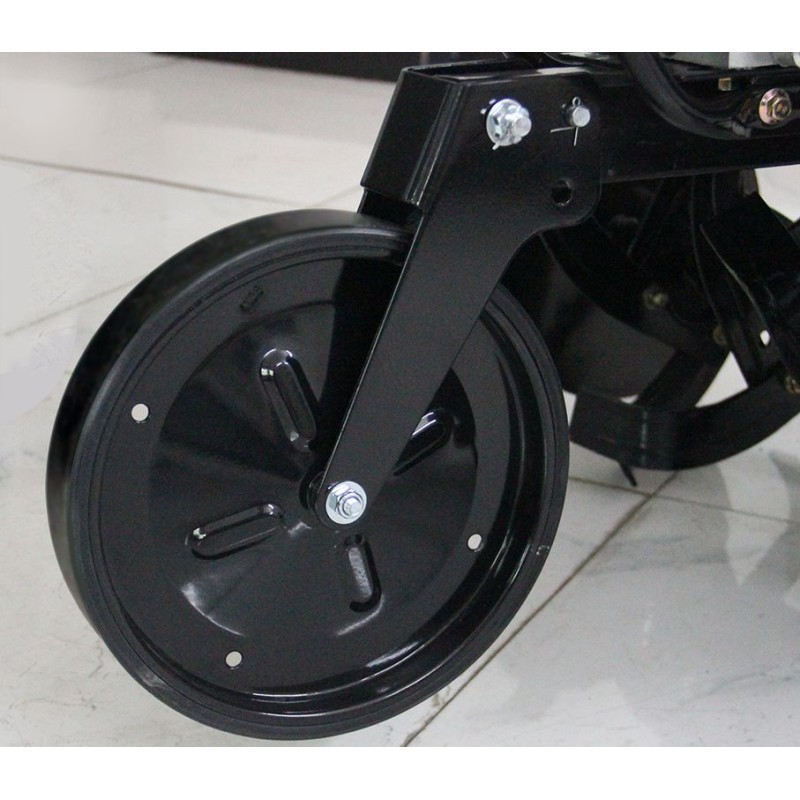 - Dodatkowe koło zostało zamontowane w celu ułatwienia transportu glebogryzarki. Dzięki temu udogodnieniu przemieszczanie jest zdecydowanie łatwiejsze