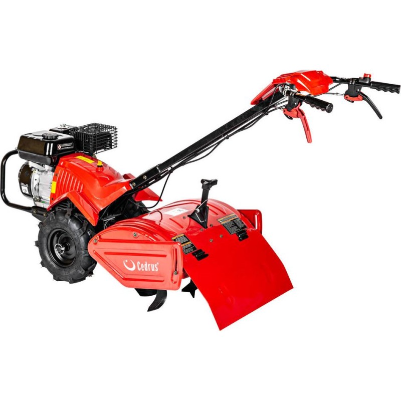 Glebogryzarka CEDRUS GLX-GT65-2L to wszechstronna i uniwersalna glebogryzarka z niezależnym napędem na koła. Przeznaczona do pracy w ogrodach, tunelach foliowych, szklarniach oraz gospodarstwach rolniczych uprawiających rośliny rzędowo. Napęd na koła doskonale amortyzuje siły przenoszone z noży roboczych, zmniejsza wysiłek podczas pracy i umożliwia dokładne spulchnienie gleby już za pierwszym przejazdem roboczym. Koła ułatwiają również przetaczanie maszyny do miejsca pracy która wykonywana tą glebogryzarką jest lekka i efektywna. Wyposażenie modelu CEDRUS GLX-GT65-2L w mocny i niezawodny silnik LONCIN , bieg wsteczny czy regulację głębokości pracy, czyni z glebogryzarki CEDRUS GLX-GT65-2L bardzo wydajne urządzenie. Przygotowanie lub uprawa gleby stają się przy jej pomocy łatwe, szybkie i przyjemne.