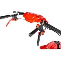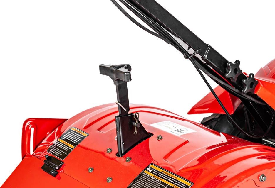 Glebogryzarka posiada koła transportowe, ułatwiające przemieszczanie się oraz regulowaną wysokość dźwigni sterującej, dzięki której można dostosować wysokość do wzrostu użytkownika.