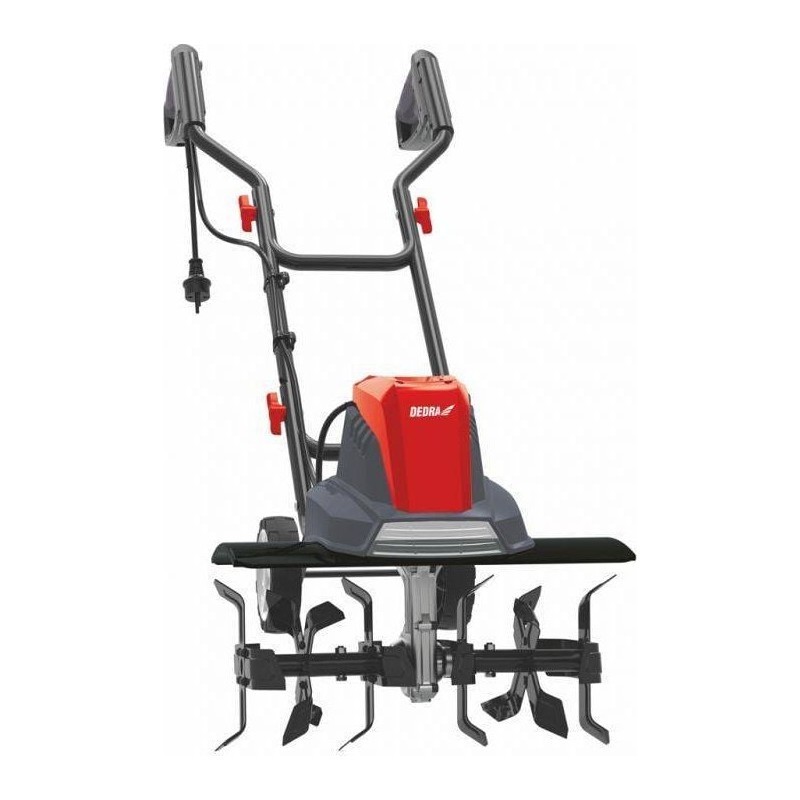 Zadbaj o glebę w ogrodzie wykorzystując glebogryzarkę DEDRA DED8710. Wykorzystując glebogryzarkę szybko spulchnisz ziemię, usuniesz chwasty czy gruntownie napowietrzysz ziemię. Jest to nieocenione narzędzie do przygotowania ziemi do nasadzenia roślin lub zmieszania ziemi wraz z nawozem. Glebogryzarka posiada liczne ostrza umieszczone na obrotowym wale, których zadaniem jest rozcięcie i przemieszanie gleby. Wirując, wywracają ziemię, a dzięki ostrzom ziemia nie ma postaci dużych brył. Glebogryzarka DEDRA DED8710 to urządzenie posiadające silnik elektryczny o mocy 1500W. Duża szerokość robocza (45cm) pozwala na szybką i efektywną pracę. Urządzenie wyposażone jest w 6 zestawów ostrych, hartowanych noży o średnicy 205mm umieszczonych na obrotowym wale, a ich specjalnie odgięty kształt zapewnia efektywne mieszanie i wgryzanie się w glebę. Uchwyt tzw. kierownicę możemy złożyć na czas transportu lub magazynowania bez wykorzystania narzędzi. Wystarczy przekręcić nakrętki motylkowe i gotowe. Wyprofilowane, ergonomiczne rączki ułatwiają sterowanie glebogryzarką i poprawiają komfort użytkowania. Umieszczone oczko w prawej rękojeści pozwala przytroczyć kabel zasilający chroniąc go przed plątaniem się. Transport urządzenia ułatwią regulowane kółka.